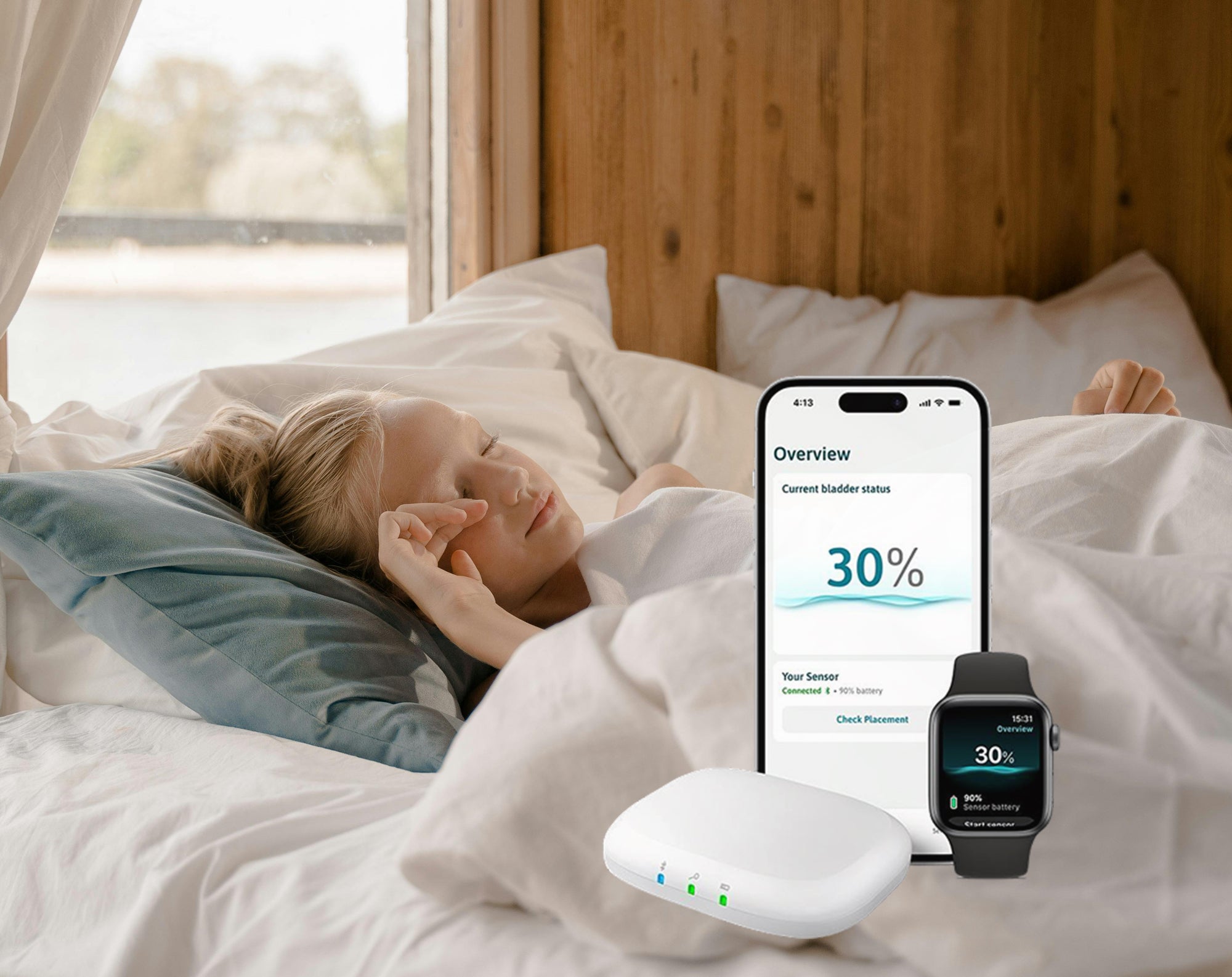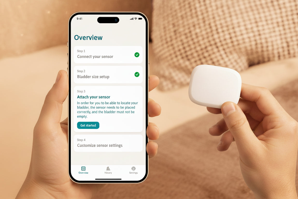 De Blaassensor is een niet-invasieve draagbare sensor die ultrasone technologie gebruikt om te meten hoe vol de blaas is. De Blaassensor wordt met een dubbelzijdige hechtpleister op de onderbuik geplaatst. Ultrasone gel en een hechtmiddel worden tussen de sensor en de huid aangebracht om een goede geleiding van het ultrasone signaal te waarborgen en om te zorgen dat de sensor op de juiste plek blijft zitten. De meetgegevens worden in de sensor verwerkt en vervolgens via Bluetooth® verzonden naar een smartphone en/of Apple Watch.